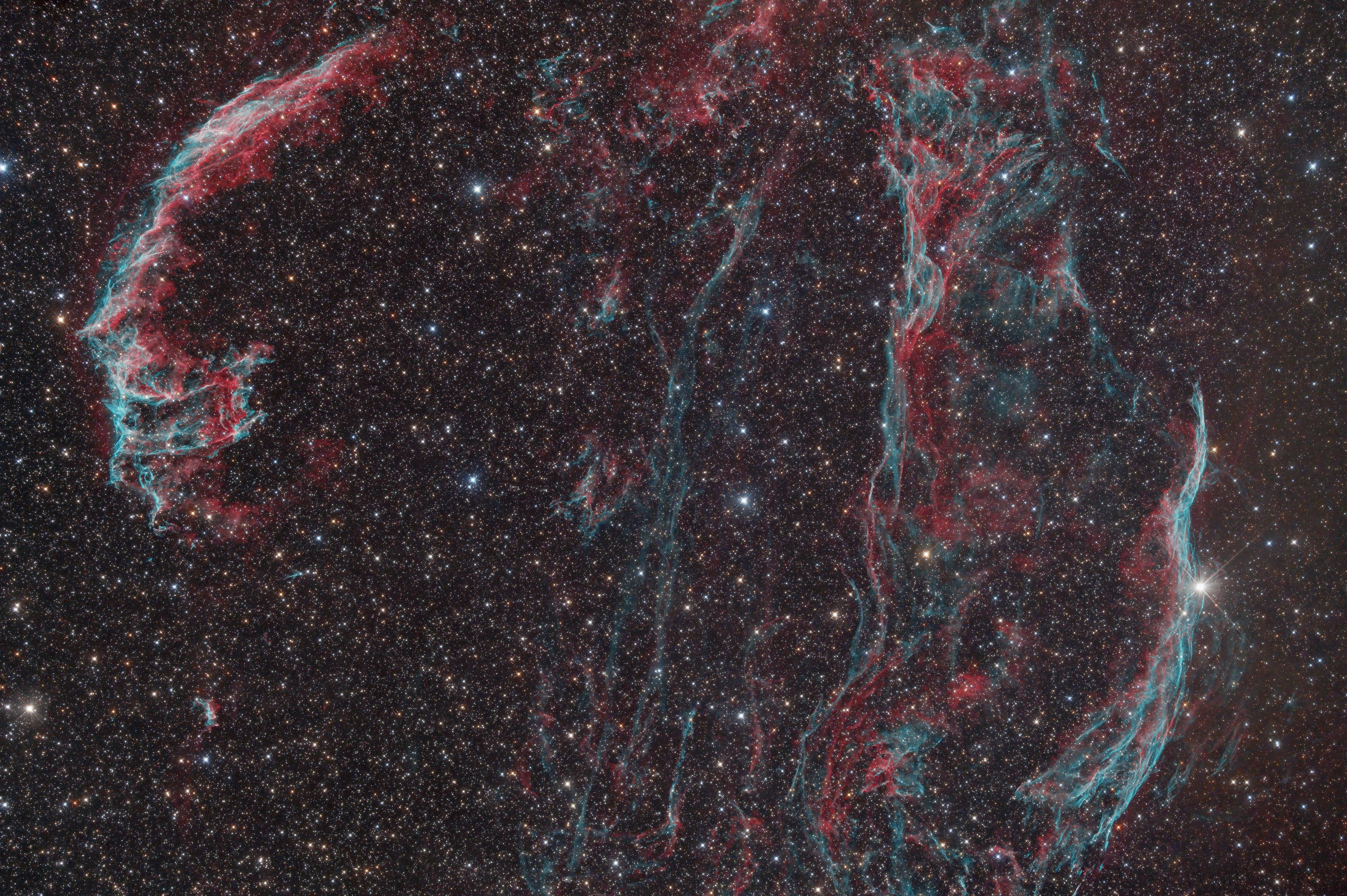 Der Zirrusnebel oder Schleiernebel ist der im optischen Spektrum sichtbare Teil des Cygnusbogens, einer Ansammlung von Emissions- und Reflexionsnebeln, die sich in einer Entfernung von rund 2400 Lichtjahren befinden. Sie sind zusammen der Überrest einer Supernova, die vor etwa 8000 Jahren stattfand. Zwischen den beiden äußeren Bögen befindet sich NGC 6979, auch bekannt als Pickering’ s Triangle.
