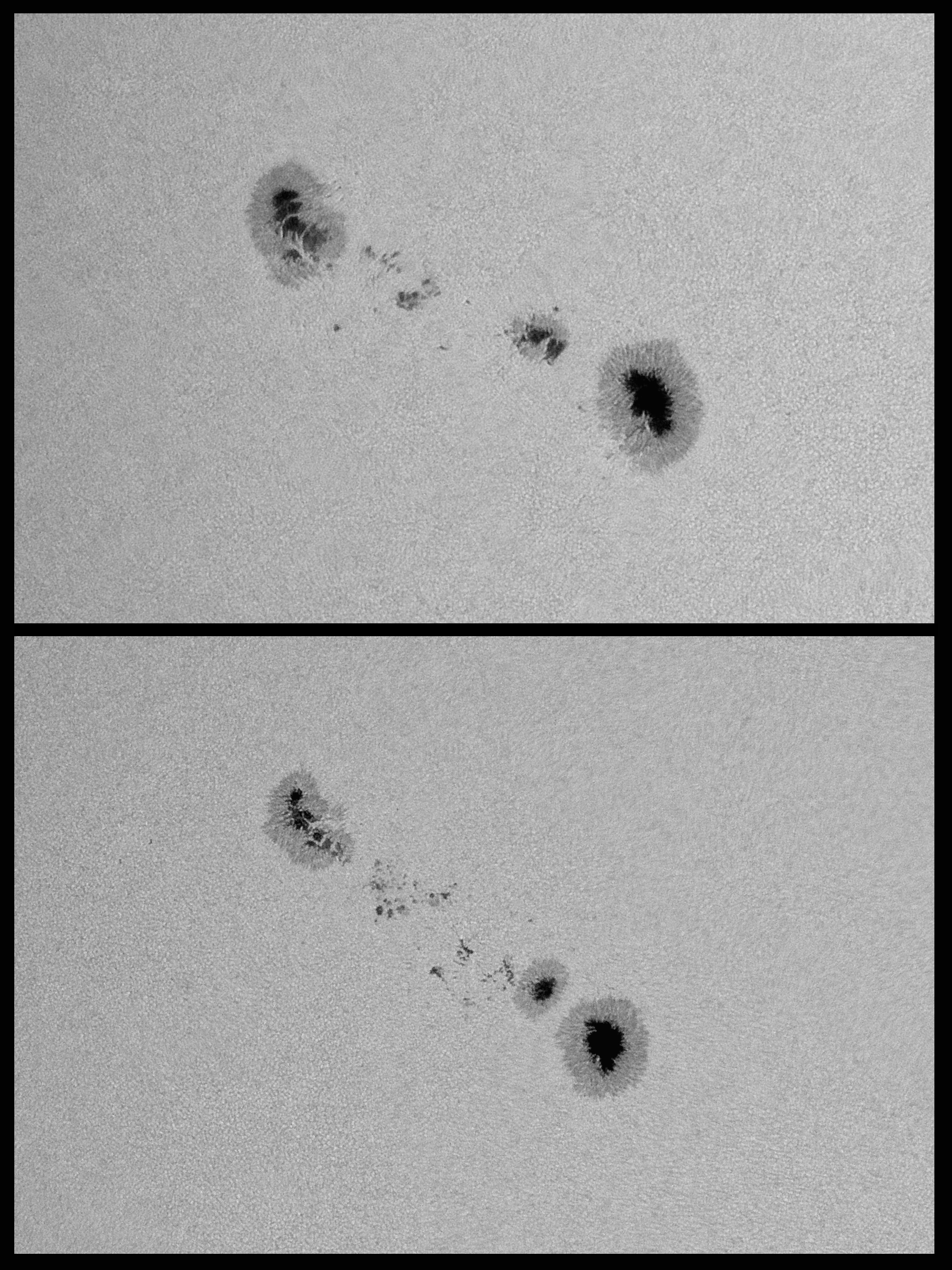 AR 12674 an zwei Tagen. Oberes Bild vom 2.September 2017 um 11:13 Uhr MESZ und das untere Bild vom 3. September 2017 um 09:15 Uhr MESZ.