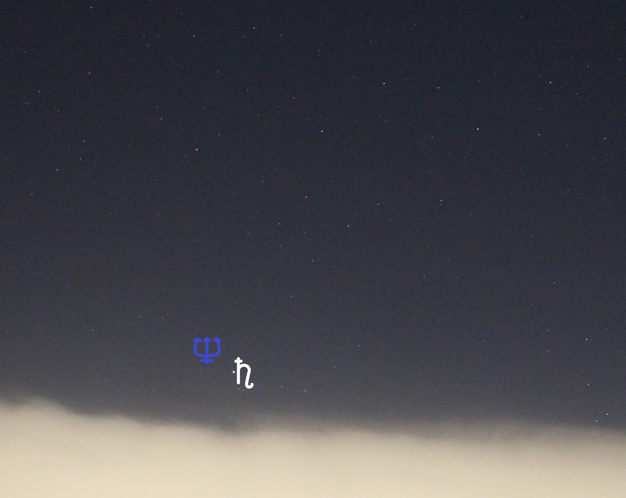 Am Morgen des 6. August 2025 konnte ich - pünktlich zur zweiten Konjunktion - endlich wieder Saturn und Neptun fotografieren, wenn auch neben einer Wolke, hinter der wenig später beide Planeten verschwanden.