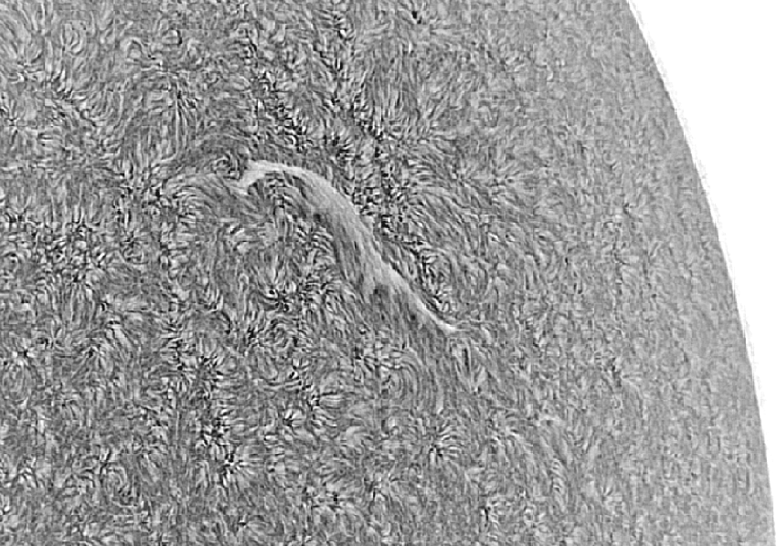 Hier ein zweites Bild des Filaments. Ich hatte ein Video übersehen, das (zumindest auf meinem Bildschirm) ein besseres Ergebnis gebracht hat. Die räumliche Struktur kommt hier noch mehr zur Geltung.