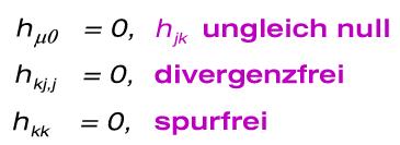 transverse traceless gauge, TT gauge) nennt. Dabei werden dem Tensorfeld der Wellengleichung