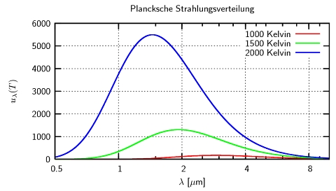 ab. Die Plancksche Strahlungsverteilung ist jedoch nicht konstant über alle Wellenlängen oder extrem schmal wie eine Spektrallinie: