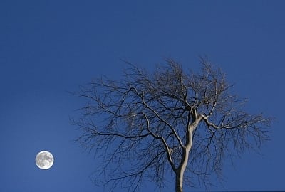 Steht der Mond knapp über dem Horizont, sehen wir ihn zum Beispiel im Kontext von Häusern und Bäumen, die alle viel näher sind. Auf Grund dieser Tiefeninformation berechnet unser Gehirn für den Himmelskörper eine besonders große Entfernung – er erscheint uns riesig. Sehen wir den Mond dagegen am leeren Nachthimmel, fehlen uns Bezugsgrößen, so dass er näher und damit entsprechend kleiner wirkt.
