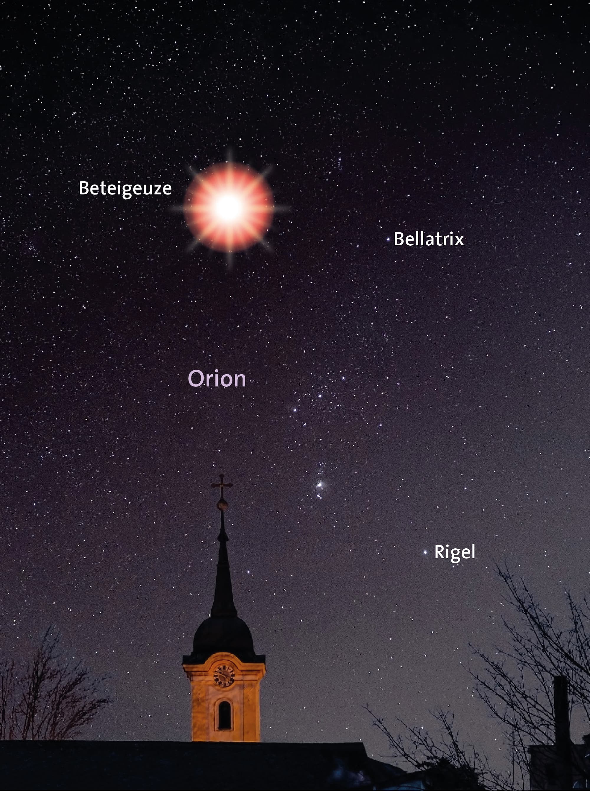 Wie in »Sterne und Weltraum« im Märzheft 2020 von Jan Hattenbach und Klaus-Peter Schröder ausführlich dargelegt wurde, ist die weniger medienträchtige, aber wissenschaftlich ganz gut begründete Sicht, dass die Supernova erst in 100 000 bis 200 000 Jahren zu erwarten ist. Dafür spricht auch, dass Beteigeuze seit nunmehr zwei Monaten wieder heller wird. Die Supernova ist also in der Tat fürs Erste abgeblasen. Bliebe die Frage, wie sie von der Erde aussehen würde.