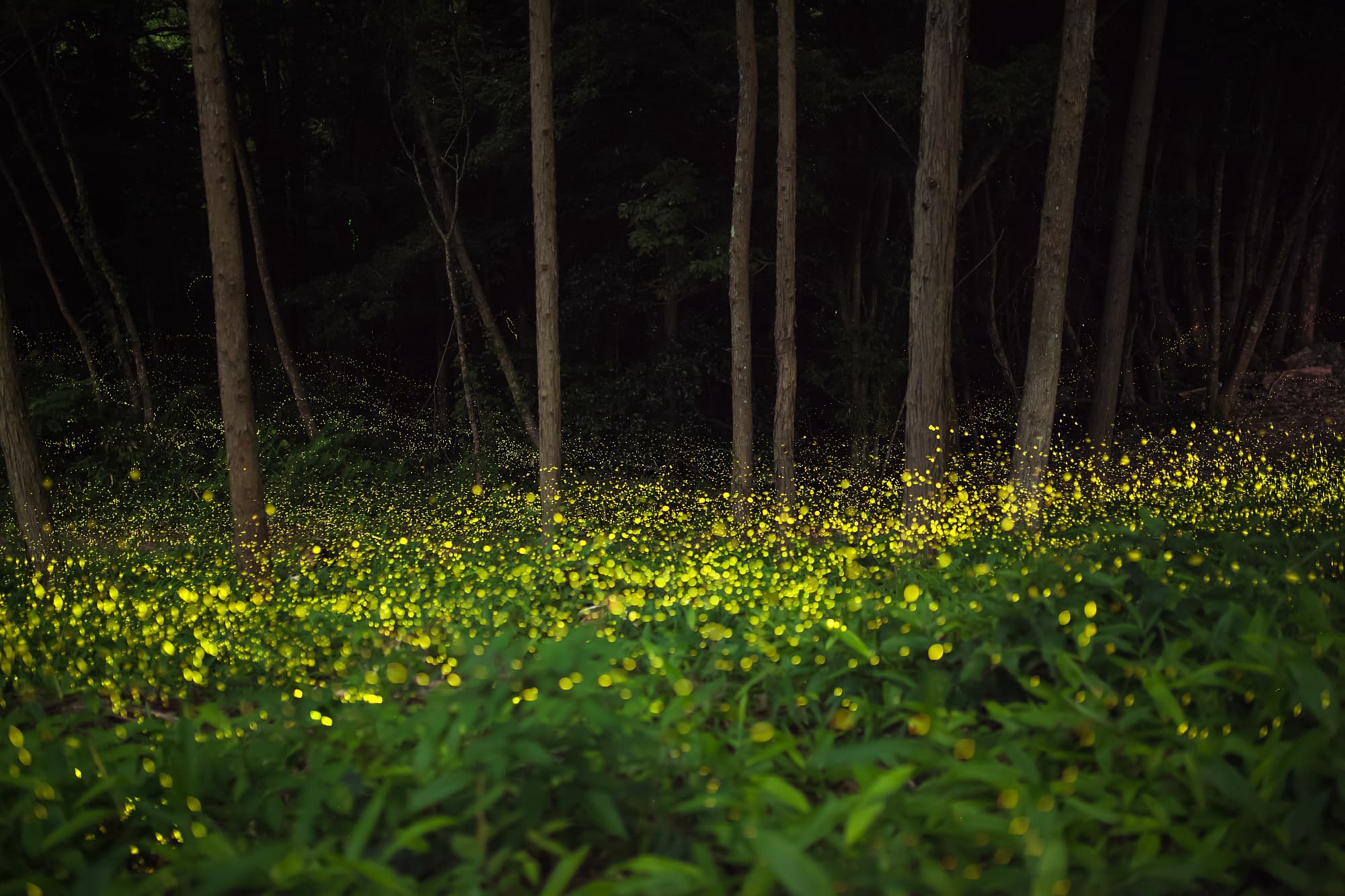 Besonders häufig bekommt man das Phänomen in trockenen Sommernächten zu sehen: Plötzlich wimmelt es im Dunkeln von kleinen Lichtpunkten. Es sind Glühwürmchen, die je nach Art entweder durchgehend leuchten oder in kurzen Zeitabständen aufblinken. Meist sind es die Weibchen, die damit paarungswillige Männchen anlocken. Da sie keine Flügel besitzen, klettern weibliche Glühwürmchen dazu auf Bäume oder Pflanzen, so dass sie von den fliegenden Männchen besser wahrgenommen werden. Bei einigen Arten leuchten auch die Männchen – wenn auch schwächer. Glühwürmchenlarven emittieren in der Regel ebenfalls Licht und schrecken damit ihre Fressfeinde ab.