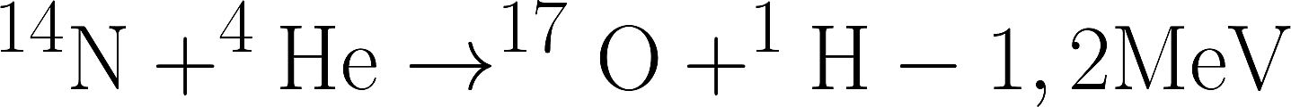 Stickstoff verschmilzt mit Helium zu Sauerstoff, und dabei bleibt der Kern eines Wasserstoffatoms, also ein Proton übrig. Bei dieser Kernfusion wird allerdings keine Energie frei; sie verbraucht stattdessen welche, was durch die negativen 1,2 Megaelektronvolt am Ende der Gleichung angezeigt wird. Damit die Kernfusion als Energiequelle genutzt werden kann, braucht es Atome mit geringerer Masse, wie der Astrophysiker Arthur Eddington 1920 spekulierte. Er dachte auch darüber nach, ob die Sterne ihre Energie nicht vielleicht aus der Fusion von Wasserstoff zu Helium beziehen.