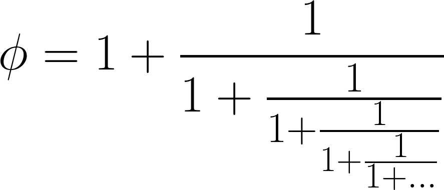 Φ ist eine irrationale Zahl, das bedeutet, dass sie nicht durch das Verhältnis zweier ganzer Zahlen angegeben werden kann (so wie das auch bei der bekannteren Kreiszahl π der Fall ist). Man kann aber Φ, so wie jede andere irrationale Zahl auch, durch eine Bruchzahl annähern. Dabei macht man zwangsläufig einen Fehler, den man dann wiederum in eine Bruchzahl umwandeln und mit der ursprünglichen Näherung kombinieren kann. Setzt man das lange genug fort, erhält man eine Abfolge ineinander verschachtelter Brüche: einen Kettenbruch.