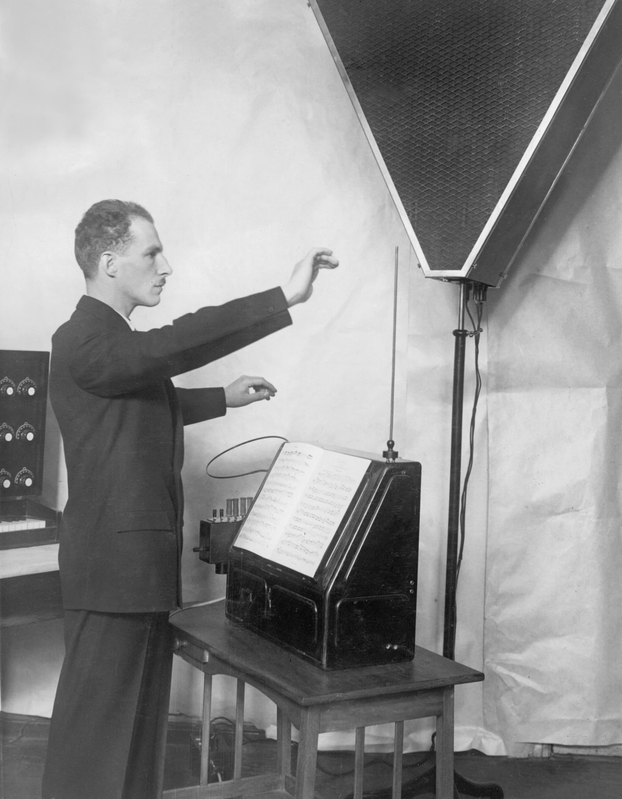 Bereits 1920 hatte Termen das Spielgerät erfunden. Er taufte es zunächst Ätherophon. Das Prinzip basierte auf einem Schwingkreis und einem Kondensator. Mit der Bewegung der Hand lassen sich Schwingungen erzeugen, die dann durch einen Oszillator verstärkt werden. Mit einer Hand steuert man die Tonhöhe und mit der anderen die Lautstärke des Instruments.