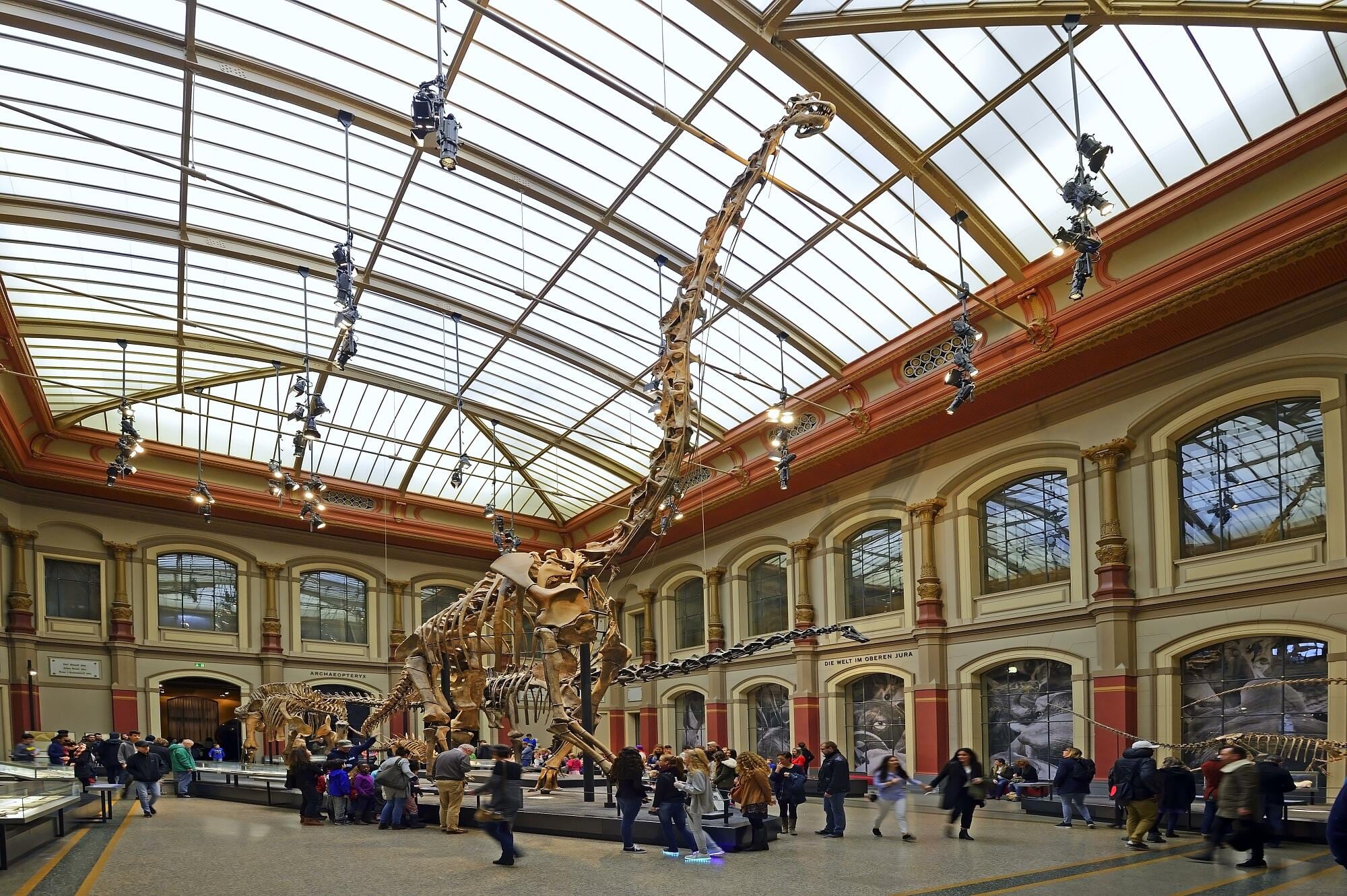 Mit enormem Aufwand hatten die Präparatoren das Skelett zusammengestellt, allein für einen Halswirbel benötigten sie 450 Arbeitsstunden. Benannt wurde der Dinosaurier nach dem damaligen Museumsdirektor, Wilhelm von Branca. Brachiosaurus brancai ist mit einer Höhe von 13,27 Metern bis heute das größte montierte Dinosaurierskelett der Welt. Er lebte vor 150 Millionen Jahren und wog rund 50 Tonnen. Mit einer Gesamtlänge von zirka 26 Metern zählte er zu den größten Landtieren der Erdgeschichte. 2009 stellte sich heraus, dass die Gattung nicht stimmte. Es handelte sich gar nicht um einen Brachiosaurus, sondern um einen Giraffatitan.