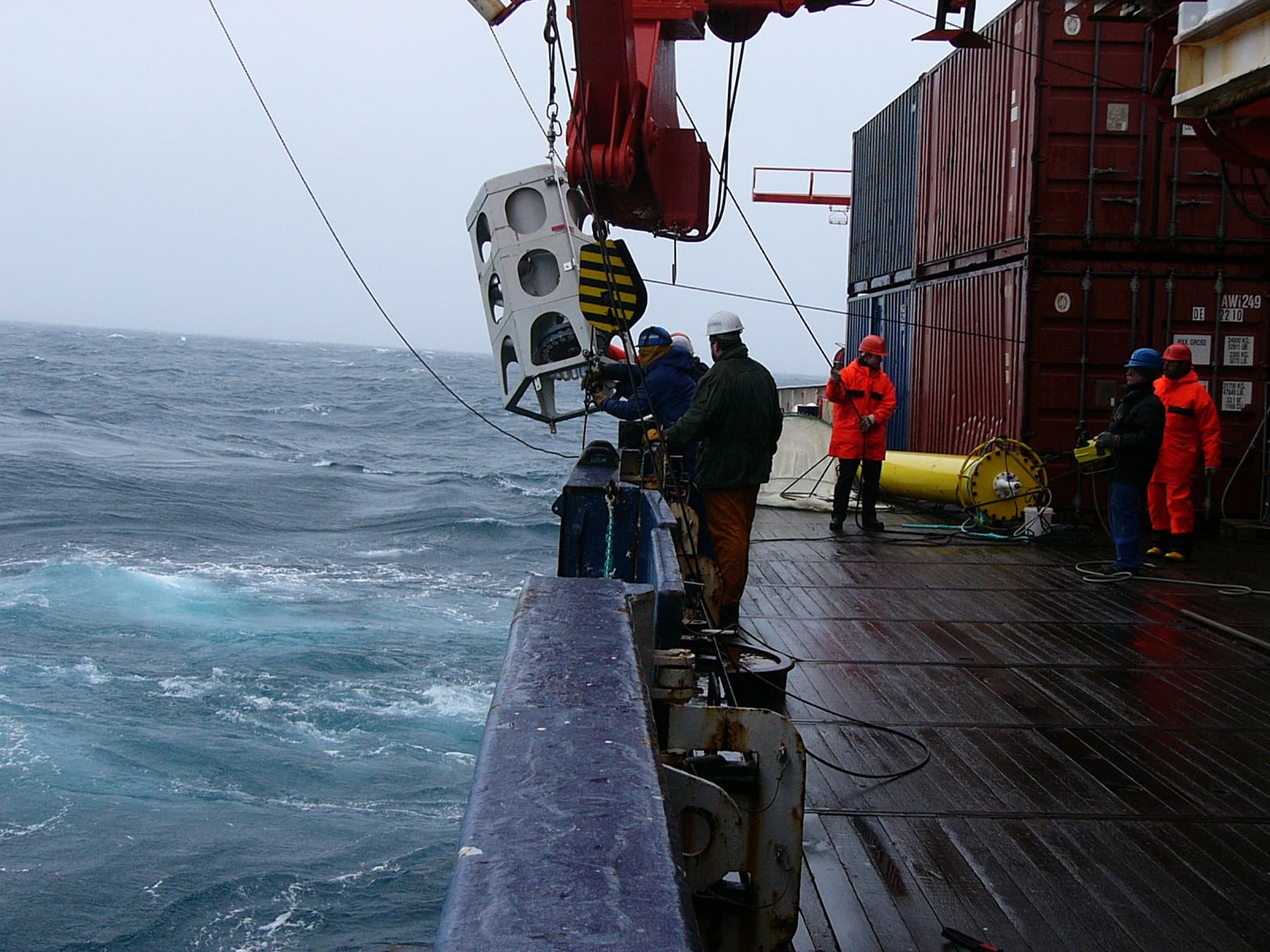 Senkstofffalle | Eine Senkstofffalle wird zu Wasser gelassen. Mit der Falle werden zum Meeresgrund absinkende Algen aufgefangen