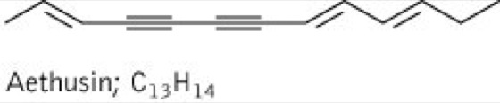 Droge:Herba Aethusae (syn. Aethusa-cynapium-Frischpflanze, Aethusa-cynapium-Kraut). Inh.: äther. Öl, Polyine (Aethusin vgl. Formel, Aethusanol A und B), Flavonoide, u.a. Narcissin und Rutosid sowie ein noch nicht genau charakterisiertes, coniinähnliches Alkaloid (Cynapin). Anw.: keine offizinellen Drogen, Anwendung in der Volksheilkunde zur Schmerzbehandlung (frischer Pflanzensaft wird als Kataplasma eingesetzt), bei gastrointestinalen Beschwerden, Durchfällen sowie bei Krämpfen.