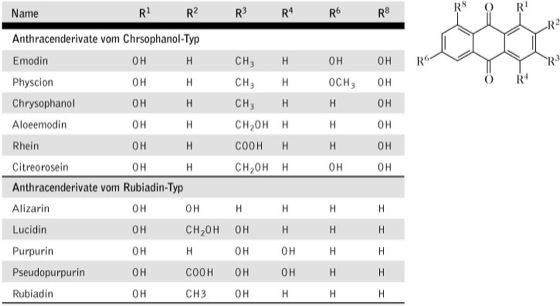 Anthracenderivate: Chrysophanol- und Rubiadin-Typ.
