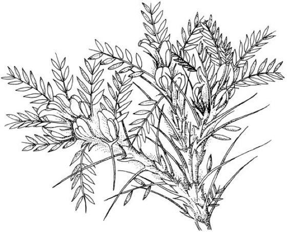Astragalus gummifer. Blühender Sproß mit Blattdornen