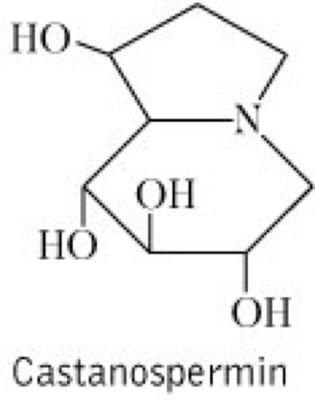 Droge: verwendet werden die Samen (Black Bean). Inh.: Stärke (Bohnenbaumstärke), Triterpensaponine, Polyhydroxyalkaloide, u.a. Castanospermin, ein 1,6,7,8-Tetrahydroxyindolizidin, und Australin, ein Pyrrolizidin-Alkaloid. Wirk.: Castanospermin besitzt insektizide und antivirale Eigenschaften, u.a. gegen HIV. Australin hemmt bestimmte Glykosidasen und gehört in die sog. Gruppe der Alkaloidal Glykosidase Inhibitors (AGI). Anw.: Die gerösteten, kastanienartigen Samen werden von den australischen Ureinwohnern gegessen. Eine therapeutische Nutzung ist nicht bekannt.
