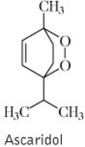 Droge:Chenopodii ambrosioides herba (syn. Herba Chenopodii ambrosioides); Mexikanisches Traubenkraut (syn. Gänsefußkraut, Wohlriechender Gänsefuß, Jesuitentee, Karthäuser Tee), die getrockneten, während der Blütezeit gesammelten, oberirdischen Teile der Pflanze. Inh.: äther. Öl (0,25-0,3 %) mit Ascaridol (40 %) vgl. Formel und L-Pinocarvon (60 %) als Hauptkomponenten. Anw.: traditionell, bes. in den Heimatgebieten, als Wurmmittel, mitunter auch bei Magen- und Darmbeschwerden.