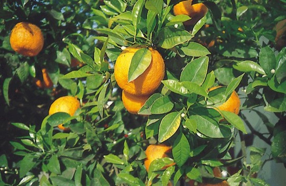 •Citrus reticulata Blanco (syn. Citrus nobilis, C. madurensis); Santaro-Orange, als Frucht gegessen.