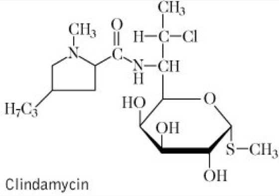 (7'-Desoxy-7-chloro-lincomycin). Antibiotikum aus der Gruppe der Lincomycine (Derivate des 1-Methyl-4-propyl-L-prolins). Es besitzt den gleichen Wirkungsmechanismus wie Chloramphenicol. Anw.: Einsatz bei Infektionen mit anaeroben Bakterien und therapieresistenten Staphylokokken, z.B. bei Osteomyelitiden.