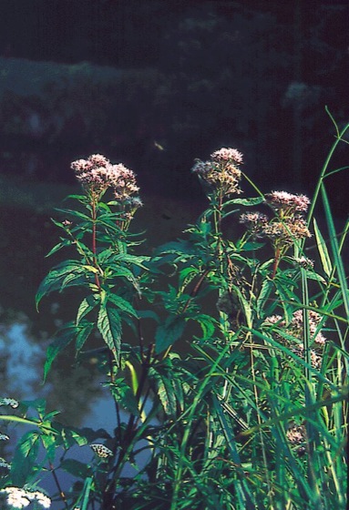 •Eupatorium purpureum L. (syn. Eupatorium maculatum, E. ternifolium); Roter Wasserhanf.