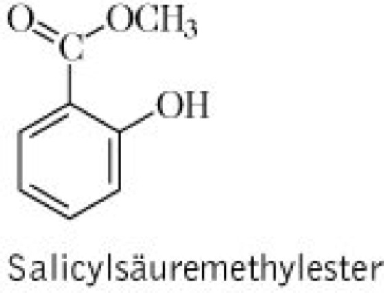 Drogen:1.Folia Gaultheriae procumbens (syn. Folia Gaultheriae); Wintergrünblätter (syn. Kanadischer Tee, Gaultheriablätter), die getrockneten Blätter. Inh.: äther. Öl (0,55-0,8 %, v.a. Salicylsäuremethylester vgl. Formel), Arbutin, Gaultherin (Monotropitosid = Methylsalicylat-Primverosid), Ericolin, Gerbstoffe, Gummi, Harz, Schleim, Wachs. Anw.: als Antiseptikum, Carminativum und Tonikum. Auch als Genußmittel wird die Droge verwendet, und zwar wie Schwarztee. 2.Oleum Gaultheriae; Wintergrünöl (syn. Gaultheriaöl), das äther. Öl der Blätter. Inh.: Methylsalicylat (96-99 %), Triacontan, weitere Ester, Alkohole, Ketone in Spuren. Anw.: als Antirheumatikum innerlich und äußerlich sowie als Antiseptikum. Auch in der Getränkeindustrie und Parfümerie wird die Droge eingesetzt.