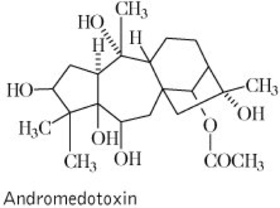 giftige Andromedan-Derivate (Diterpene) der Ericaceae, z.B. aus Arten der Gattungen Rhododendron, Kalmia, Pieris, Lyonia oder Leucothoe. Die wichtigsten G. sind Grayanotoxin I, II und III, die mit den Verbindungen Acetylandromedol (Andromedotoxin) vgl. Formel, Anhydroandromedol und Andromedol identisch sind. Die G. induzieren u.a. rauschähnliche Zustände, Krämpfe sowie in hoher Dosierung Herzlähmung. Sie senken den Blutdruck und wirken positiv inotrop.