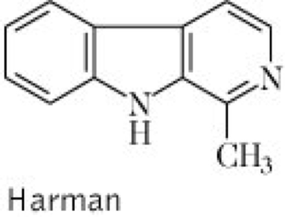 Indolalkaloid vom β-Carbolintyp. Wirk.: hemmt die Monoaminoxidase A und wirkt dadurch in höheren Konzentrationen psychotomimetisch (Halluzinogene biogenen Ursprungs).