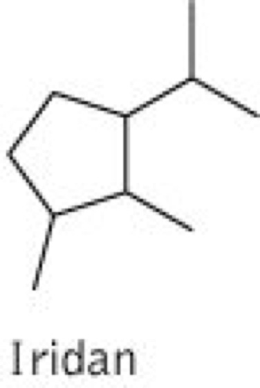 Monoterpene mit einem partiell hydrierten Cyclopenta[c]-pyran-Grundkörper, vollständig hydriert auch als Iridan-Grundkörper vgl. Formel bezeichnet. Sie kommen meist als 1-O-Monoglucoside oder 1-O-Acylderivate vor und sind im Pflanzenreich wie auch bei Tieren weit verbreitet. Wirk.: entzündungshemmend, antibiotisch. Die I. besitzen teilweise einen sehr bitteren Geschmack (Secoiridoidglykoside der Gentianaceae).