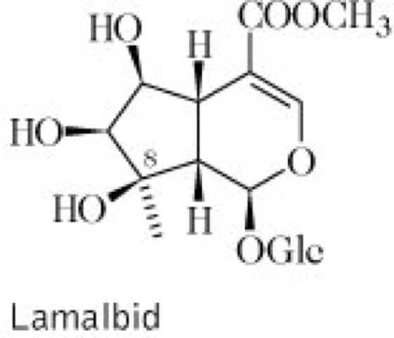 Drogen:1.Lamii albi flos (syn. Flores Lamii albi, Flores Urticae mortuae); Taubnesselblüten (syn. Bienensaugblüten, Heubeln, Weiße Nesselblumen, Weiße Taubnesselblüten), die getrockneten Blumenkronen mit den ansitzenden Staubblättern. Inh.: Iridoidglykoside, besonders Lamalbid vgl. Formel, Phenylpropanderivate, z.T. glykosidiert, u.a. Lamalbosid, Flavonoide, Gerbstoffe und Schleimstoffe. Anw.: Katarrhe der Atemwege sowie äußerlich als Spülung bei leichten Entzündungen im Mund- und Rachenbereich und unspezifischem Fluor albus sowie in Form von Umschlägen bei leichten Oberflächenentzündungen der Haut. 2.Lamii albi herba (syn. Herba Lamii albi); Weißes Taubnesselkraut, die rasch getrockneten, während der Blütezeit gesammelten, oberirdischen Teile. Inh.: s. Lamii albi flos. Anw.: volkstümlich bei Beschwerden im Magen-Darm-Bereich, z.B. Magenreizungen, Völlegefühl und Blähungen. Früher Bestandteil von Frauentees. Zur Teezubereitung verwendet man als Einzeldosis 2 Teelöffel (1 Teelöffel = 0,5 g) feingeschnittene Droge. Die Tagesdosis liegt bei 3 g Droge.