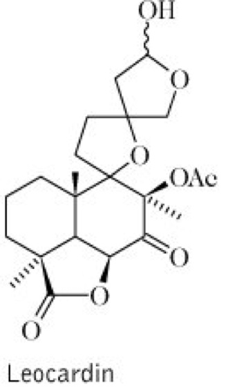 Droge:Leonuri cardiacae herba (syn. Leonuri herba, Herba Leonuri cardiacae); Herzgespannkraut, das getrocknete Kraut. Inh.:Iridoide, u.a. Ajugol (Leonurid), Diterpenbitterstoffe vom Labdantyp, u.a. Leocardin vgl. Formel, ferner Stachydrin (N-Dimethyl-L-prolin), Leonurin (Syringasäureester des 4-Guanidino-butan-1-ols), phenylpropanoide Esterglykoside, u.a. Kaffeesäurerutinosid, Flavonoide, u.a. Rutosid, Quercitrin und Hyperosid sowie geringe Mengen äther. Öl. Anw.: bei nervösen Herzbeschwerden, als Adjuvans bei Schilddrüsenüberfunktion, bei klimakterischen Beschwerden. Bestandteil einiger Phytopharmaka.