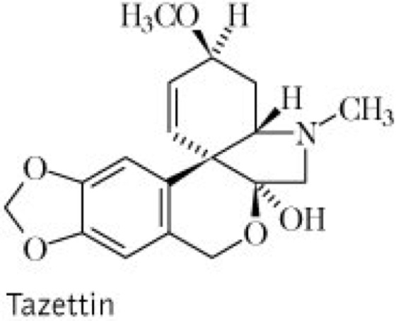 Droge: die Zwiebel. Die Droge ist giftig! Inh.: Alkaloide, u.a. Lycorin, Tazettin vgl. Formel, Galanthamin und Homolycorin. Anw.: früher als herzwirksame Droge bei Herzinsuffizienz.