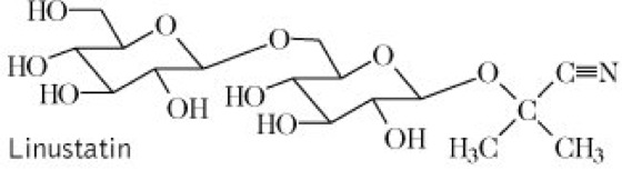 cyanogenes Glykosid, u.a. in den Samen von Linum usitatissimum und in der Wurzelknolle von Manihot esculenta enthalten. Linustatin ist ein α-Hydroxyisobuttersäurenitril-β-D-gentiobiosid, das zu 0,2-0,4 % im Leinsamen enthalten ist. Während der Passage im Magen-Darm-Trakt wird Linustatin gespalten und es entwickelt sich Cyanid, das vom Organismus aber sofort zu Thiocyanat entgiftet und ausgeschieden wird. vgl. Formel