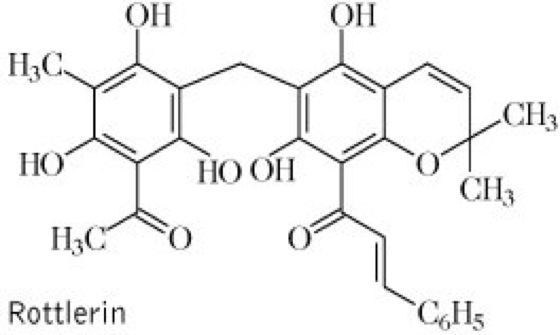 Drogen:1.Glandulae Kamala (syn. Glandulae Rottlerae, Malloti glandulae, Rottlerae glandulae); Kamala, die von der Frucht abgeriebenen Haarorgane (Drüsen und Haare). Inh.: Phloroglucinderivate (47-80 % Harze mit Rottlerin vgl. Formel und Isorottlerin sowie ihren Derivaten), Glykoside, Gerbsäure, organische Säuren, Gummi, Zucker, Stärke, Wachs, Cellulose. Anw.: in der indischen und arabischen traditionellen Heilkunde bei Wurmbefall, Tumoren, Lepraläsionen, Miktionsstörungen und zur Empfängnisverhütung. Da die Wirkung unsicher ist, wird die Droge heute als obsolet betrachtet. In der Veterinärmedizin wurde die Droge bei Wurmerkrankungen von Haustieren eingesetzt, allerdings ist die Wirkung auch hier unsicher. 2.Mallotus-philippinensis-Samen; die reifen Samen. Inh.: Cardenolide (0,08 %, v.a. Corotoxigeninrhamnosid), fettes, trocknendes Öl (20-30 % mit ungesättigten Fettsäuren), Phloroglucinderivate, v.a. Rottlerin, 4-Hydroxyrottlerin und Rubranin. Anw.: in der indischen Volksheilkunde zur Wundbehandlung bzw. bei Pilzinfektionen. In der Kosmetik wird das Öl zur Herstellung von Salben bzw. im Haushalt als Gewürz verwendet (Camulöl). Auch als Bestandteil von Firnissen oder als Brennöl kommt es zum Einsatz.