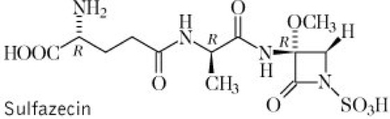 Gruppe monocyclischer β-Lactam-Antibiotika, deren Grundstruktur sich durch einen viergliedrigen β-Lactamring ohne ankondensiertes zweites Ringsystem auszeichnet. M., wie Sulfazecin vgl. Formel besitzen derzeit nur untergeordnete therapeutische Bedeutung.