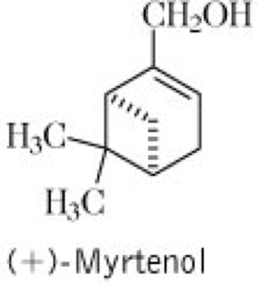 Drogen:1.Myrti aetheroleum (syn. Oleum Myrti); Myrtus-communis-Blätteröl, das aus den Blättern und Zweigspitzen gewonnene äther. Öl. Inh.: bes. 1,8-Cineol (12-45 %), α-Pinen (15-38 %), Myrtenol (bis 5 %) vgl. Formel, Myrtenylacetat (4-20 %) sowie Limonen (2-19 %). Anw.: volkstümlich bei Erkrankungen der Atmungsorgane sowie bei Blasenleiden. 2.Myrti folium (syn. Folia Myrti); Myrtenblätter, die getrockneten Blätter. Inh.: äther. Öl (0,1-0,5 %, s. Myrti aetheroleum), phenolische Verbindungen, u.a. Gerbstoffe (bis 20 %), Flavonoide und Phloroglucinderivate (Myrtucommulon A und B). Anw.: volkstümlich bei Erkrankungen der Atmungsorgane, Hämorrhoiden und Prostataerkrankungen.