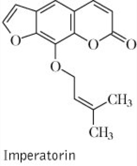 Droge:Rhizoma Imperatoriae (syn. Radix Imperatoriae, Radix Astrantiae, Radix Ostruthii, Imperatoria Ostruthium); Meisterwurz, das gesamte Rhizom. Inh.: äther. Öl (0,2-1,4 %), Bitterstoffe, u.a. Osthin, Peucenin; Ostruthin, Furanocumarine, wie Imperatorin vgl. Formel, Peucedanin, Isoimperatorin, Oxypeucedanin, Gerbstoffe, Harz und Flavonoide. Anw.: in der Volksheilkunde als Ersatz für Radix Angelicae (Angelica archangelica) in Stomachika, weiterhin als Diuretikum, Sedativum, Diaphoretikum, auch bei Gicht, Rheuma und Fieber. Die Droge wird einigen Bitterschnäpsen als Bittermittel zugesetzt.