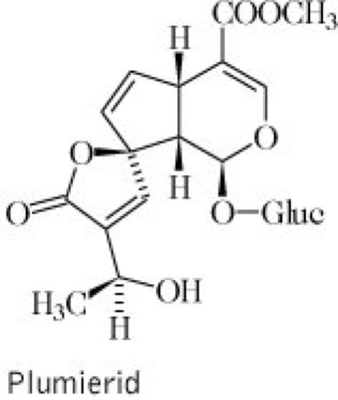 Droge:Cortex Plumeriae acutifoliae, die Rinde. Inh.: Iridoid-Glykoside, wie Plumierid (ca. 4 %) vgl. Formel; Fulvoplumierin, Zimtsäurederivate, Kautschuk. Anw.: in der Volksheilkunde bei äußerlichen Infektionen.