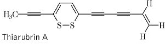 Droge:Rudbeckia-hirta-Kraut, die zur Blütezeit geernteten frischen oder getrockneten oberirdischen Teile. Inh.: Polyine, bes. Dithiapolyine und Thiarubrine A vgl. Formel und B vgl. Formel, Flavonoide, Sterole und Triterpene. Wirk.: hohes Allergisierungspotential, die therapeutische Anwendung ist daher nicht zu empfehlen.