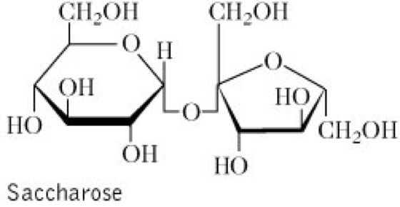 (Rohrzucker), Disaccharid aus Glucose und Fructose vgl. Formel. S. wird hauptsächlich aus Zuckerrüben (Beta vulgaris ssp. vulgaris var. altissima Döll, Beta vulgaris) und Zuckerrohr (Saccharum officinarum) gewonnen. Anw.: galenischer Hilfsstoff, bedeutsamer Rohstoff für die Nahrungsmittelindustrie, Geschmackskorrigens, zur Herstellung von Sirupus simplex.