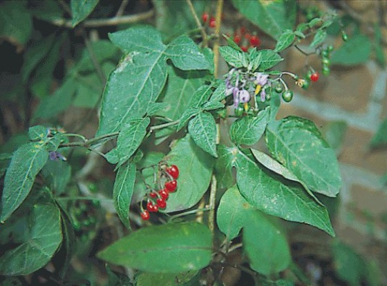 Droge: die Beeren. Inh.: Steroidalkaloidglykoside, vor allem Solasonin und Solamargin.