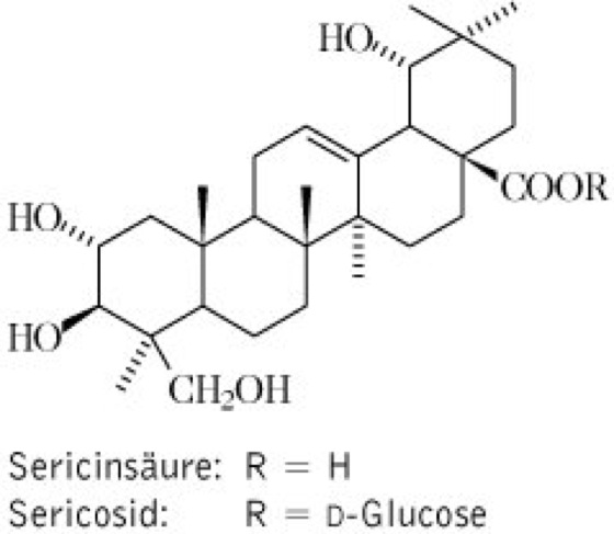 Droge: die Wurzeln. Inh.: Triterpene, wie Sericinsäure, Sericosid vgl. Formel; Resveratrol-3-O-rutosid. Anw.: in der afrikanischen Volksheilkunde häufig verwendet bei Entzündungen und gegen Geschlechtskrankheiten sowie bei Magenbeschwerden, Augenerkrankungen, Dysenterie, Koliken und bei Hautkrankheiten. Auch zur Bereitung von Pfeilgiften wird die Droge genutzt.