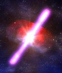Es handelt sich dabei um Strahlungsausbrüche im hochenergetischen Bereich der Gammastrahlung, die auf sehr kurzen Zeitskalen (Millisekunden bis einige hundert Sekunden) am Himmel beobachtbar sind. Gamma Ray Bursts werden mit dem Akronym GRB abgekürzt. Im Deutschen ist der Begriff Gammastrahlenausbruch geeignet. Wie ein GRB in etwa aussieht, zeigt die Illustration rechts (Credit: Website des Röntgensatelliten Chandra, NASA/CXC). Dieser Lexikoneintrag demonstriert, dass GRBs ein sehr aktives und aktuelles Forschungsgebiet der Astronomie sind. Allein in den letzten Jahren wurden umwälzende Entdeckungen gemacht.