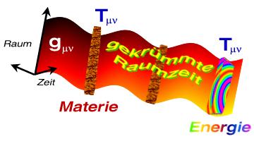 Raum und Zeit bilden eine Einheit und stellen die 'Bühne (die Welt), wo sich die Geschehnisse ereignen. Diese 'Bühne; ist jedoch dynamisch (siehe auch Diffeomorphismus) und in ihrer Dynamik beeinflusst von jeder Energieform, z.B. von der Masse.