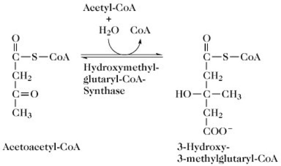 3-Hydroxy-3-methylglutaryl-Coenzym A. Biosynthese von 3-Hydroxy-3-methylglutaryl-Coenzym A aus Acetoacetyl-CoA, Acetyl-CoA und Wasser.