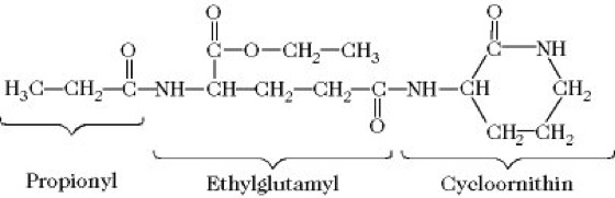 Acrasin, ein in den Aggregationszentren von Schleimpilzen abgesonderter Faktor, der Einzelzellen stimuliert, zu aggregieren und Fruchtkörper zu bilden. Das A. von Dictyostelium ist zyklisches AMP (Adenosinphosphate). Dies weist darauf hin, dass diese Substanz ursprünglich ein Hormon war. Das A. von Polysphondium violaceum ist das Dipeptid "Glorin" (Abb.).
