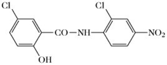 Anthelminthika, Wurmmittel, d. h. Verbindungen, die zur Bekämpfung von Eingeweidewürmern bei Mensch und Tier verwendet werden. Sie sollen gegen die im Magen-Darm-Trakt und in einigen Fällen in Geweben befindlichen Parasiten wirksam sein. Als Mittel gegen Nematoden (Fadenwürmer, z. B. Oxyuren, Madenwürmer) und Askariden (Spulwürmer) werden z. B. Piperazin, Cyaninfarbstoffe (wie Pyrviniumembonat), Benzimidazolderivate (wie Mebendazol) und zyklische Amidine (wie Pyrantel) eingesetzt. Als Cestodenmittel (Mittel gegen Bandwürmer) hat heute das Salicylanilinderivat Niclosamid (Abb.) große Bedeutung.
