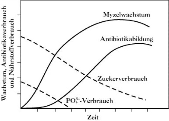 Antibiotika. Kinetik von Wachstum und Antiobiotikabildung.