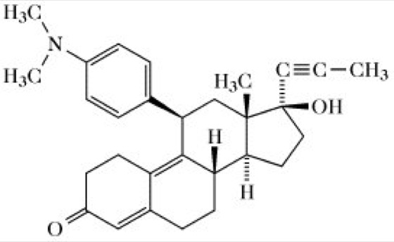 Antiprogesterone, Antigestagene, Verbindungen, die antagonistisch wirken gegenüber dem für die Entstehung und Aufrechterhaltung der Schwangerschaft notwendigen Progesteron (Gestagene). Die A. werden an den Progesteron-Rezeptor fester gebunden als Progesteron. Potenzielle Anwendungen sind u.a. die Geburtshilfe (Förderung der Wehen, Verbesserung der Öffnung der Geburtswege u.a.), die Behandlung hormonsensitiver Tumoren (z.B. Brustkrebs). Mifipriston (RU 486) ist ein Handelspräparat (Abb.), das zum Schwangerschaftsabbruch in Kombination mit Prostaglandinen eingesetzt wird und als Abtreibungspille ("Pille danach") in die Diskussion geraten ist.