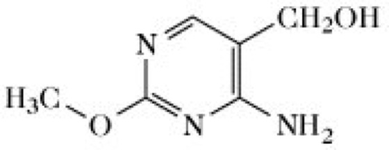 Bacimethrin, 4-Amino-2-methoxy-5-pyrimidinmethanol, ein von Bacillus megatherium synthetisiertes Pyrimidinantibiotikum (F. 173-174°C, Abb.). Thiamin und Pyridoxin wirken antagonistisch. B. ist aktiv gegen einige Hefen und Bakterien.