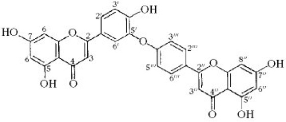 b) 4',6'' (Ether), z.B. Hinekiflavon (Apigenindimer),