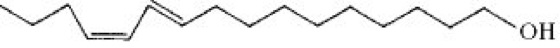 Bombykol, 10-trans-12-cis-Hexadecadienol-(1), ein Pheromon, der Sexuallockstoff der weiblichen Falter des Seidenspinners (Bombyx mori). B. (Abb.) ist ein Öl (n ![]()