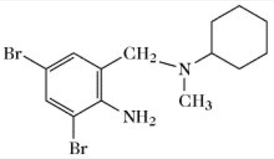Bromhexin, eine bromhaltige aromatische Aminoverbindung (Abb.), die als Hydrochlorid in Hustenmitteln enthalten ist. B. entfaltet eine bronchosekretolytische Wirkung.